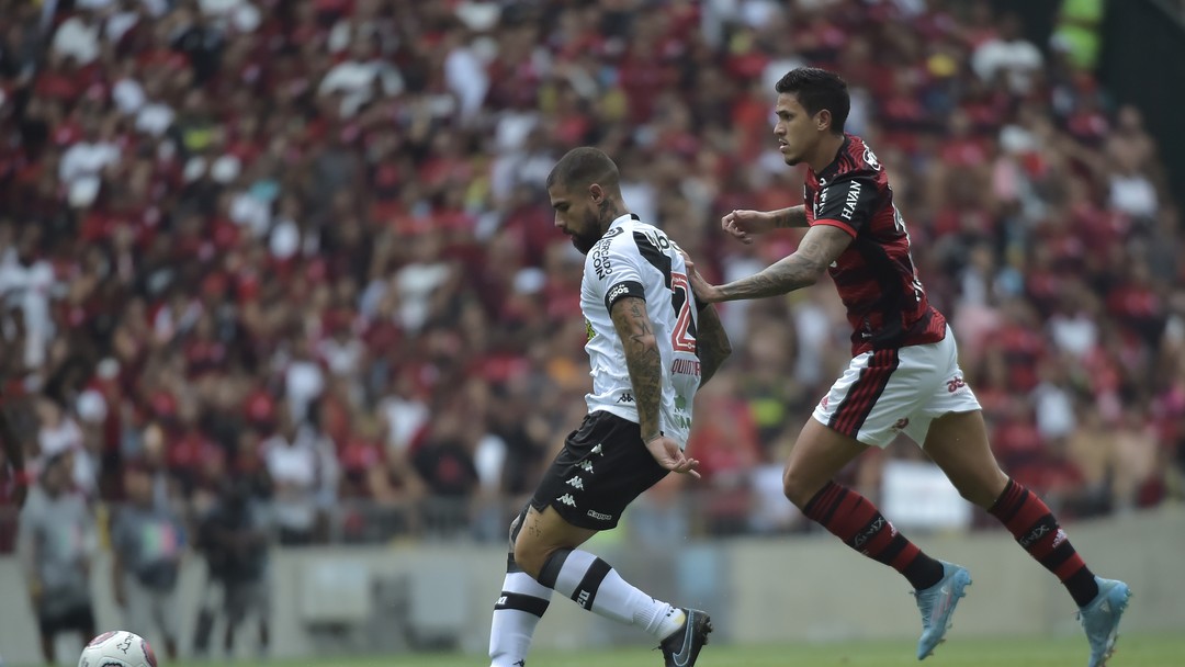 Gabigol teve a chance de ampliar. Arrascaeta deixou o atacante cara a cara. O artilheiro rubro-negro tentou encobrir o goleiro, mas chutou para fora. O tempo fechou um minuto depois. Gabigol fez falta em Gabriel Pec. Os jogadores do Vasco, então, cercaram e empurraram o atacante.