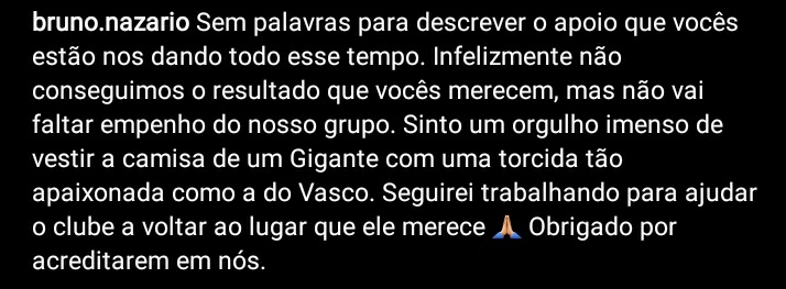 Bruno Nazário agradece o apoio da torcida do Vasco