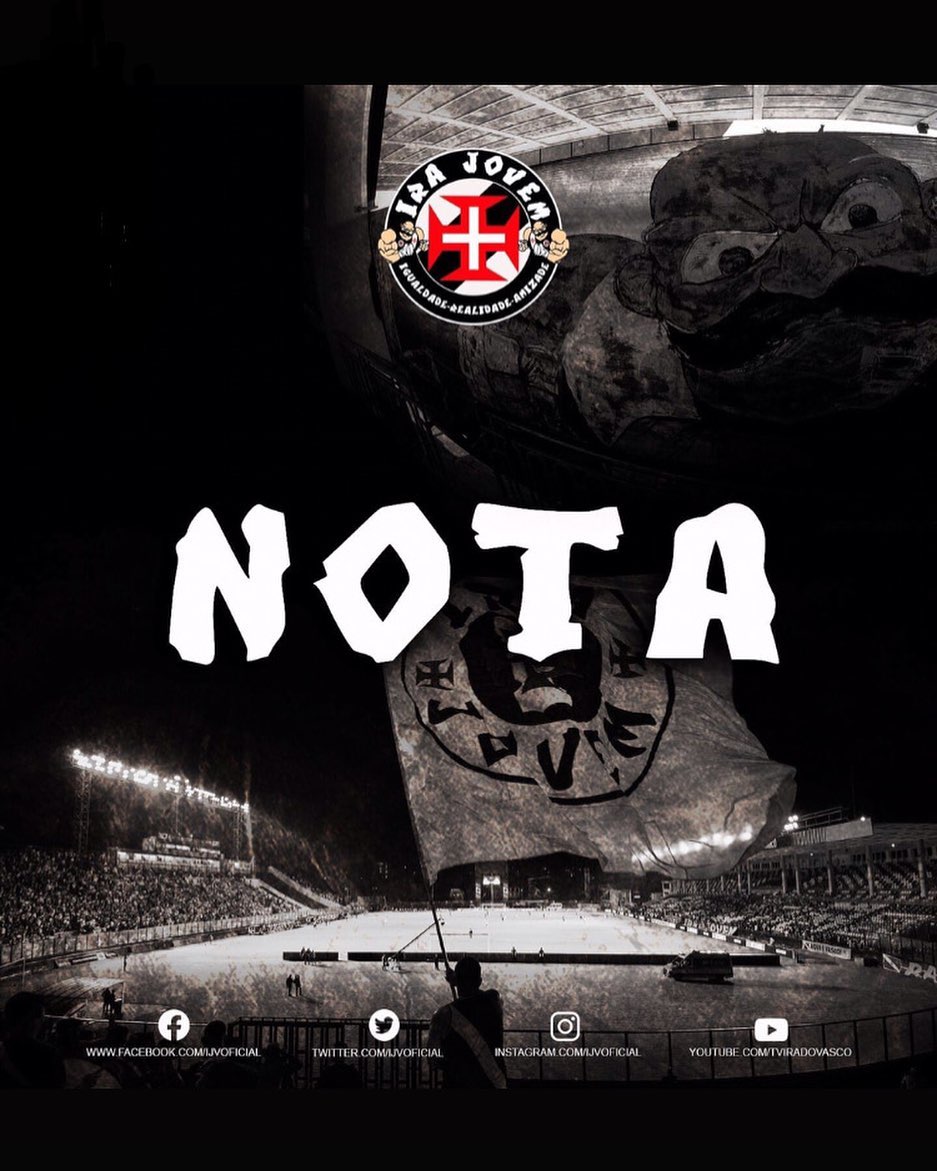 Reafirmamos, a IRA JOVEM VASCO estará sempre ao lado do VASCO.
