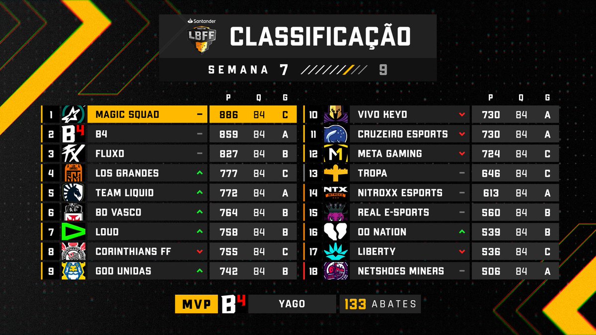 Rodada 21 da #LBFF finalizada, então se liga como ficou o top 3 da tabela! 👇