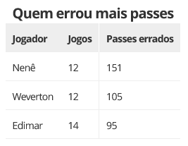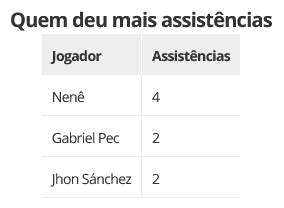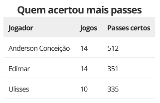 Quem mais deu assistências? Quem acertou e errou mais passes? Qual jogador mais cometeu faltas e qual foi mais caçado em campo? Veja esses e outros números: