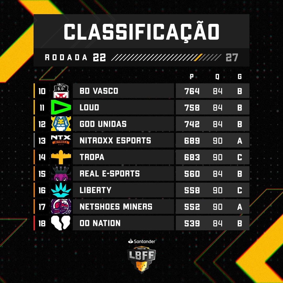 Rodada 22 da #LBFF finalizada, então se liga como ficou o top 3 da tabela! 👇