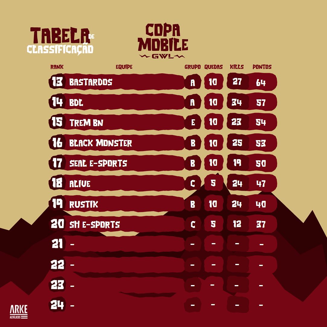 Agora restam apenas duas rodadas para finalizarmos a semifinal e sabermos quem serão os 12 finalistas da Copa Mobile GWL - Season 4, bora de tabela geral então?! 🤩💥