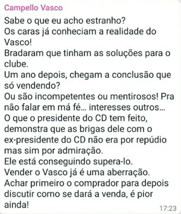 Campello: 'Bradaram que tinham as soluções para o clube. Um ano depois, chegam a conclusão que só vendendo?'; veja vídeo