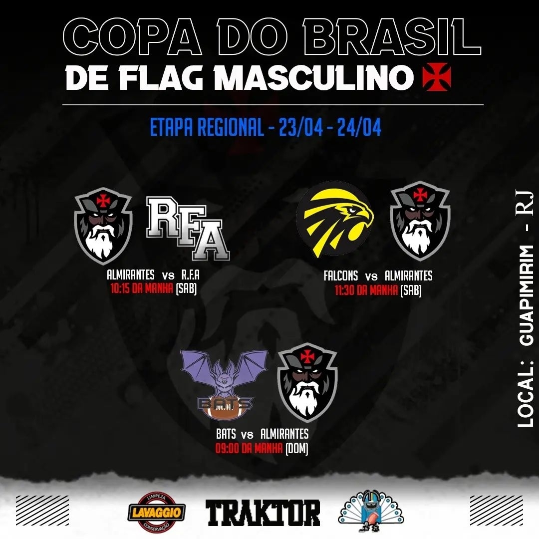 Saiu o calendário da etapa regional da Copa do Brasil de Flag Masculino. Marca aí na sua agenda e vamos em busca do caneco 🏆!