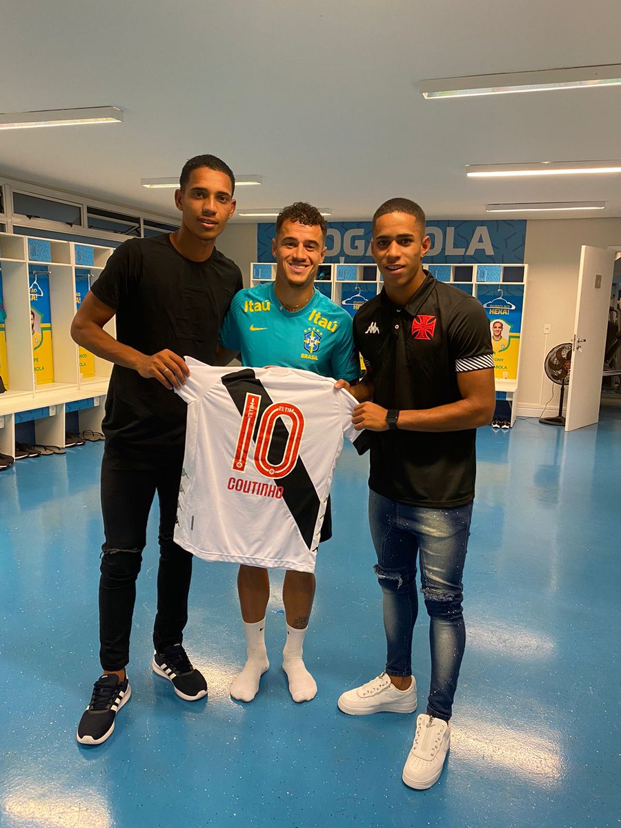 Philippe Coutinho recebeu camisa do Vasco dos jovens da base Erick Marcus e Victor Araújo; veja