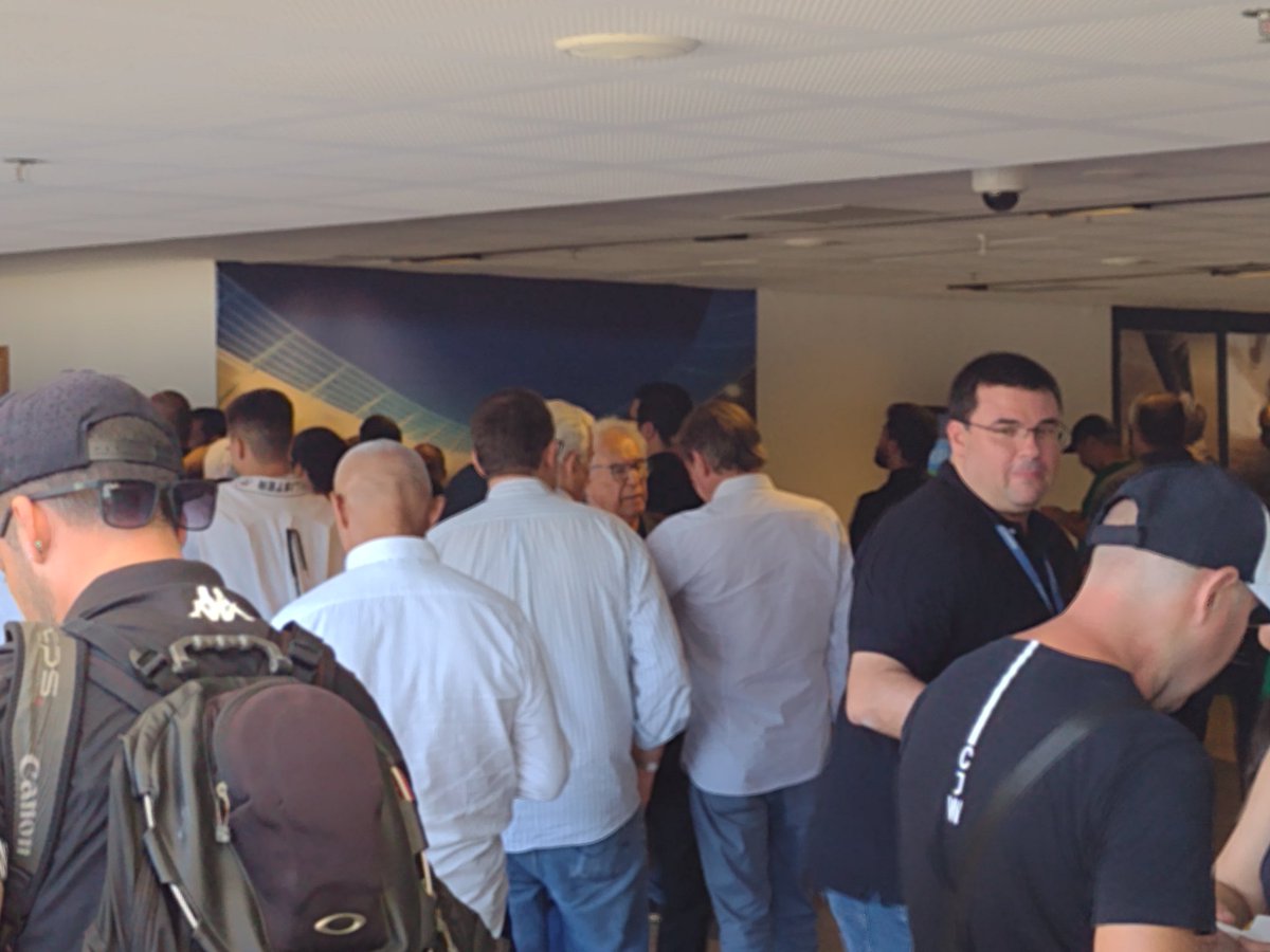 O presidente Jorge Salgado e Mussa conversam antes da cerimônia. Carlos Osório, Júlio Brant, Zé Colmeia, membros de torcida organizada. Está geral aqui.