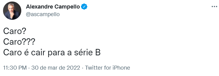 27/03/22 - Campello: 'Bradaram que tinham as soluções para o clube. Um ano depois, chegam a conclusão que só vendendo?'; veja vídeo