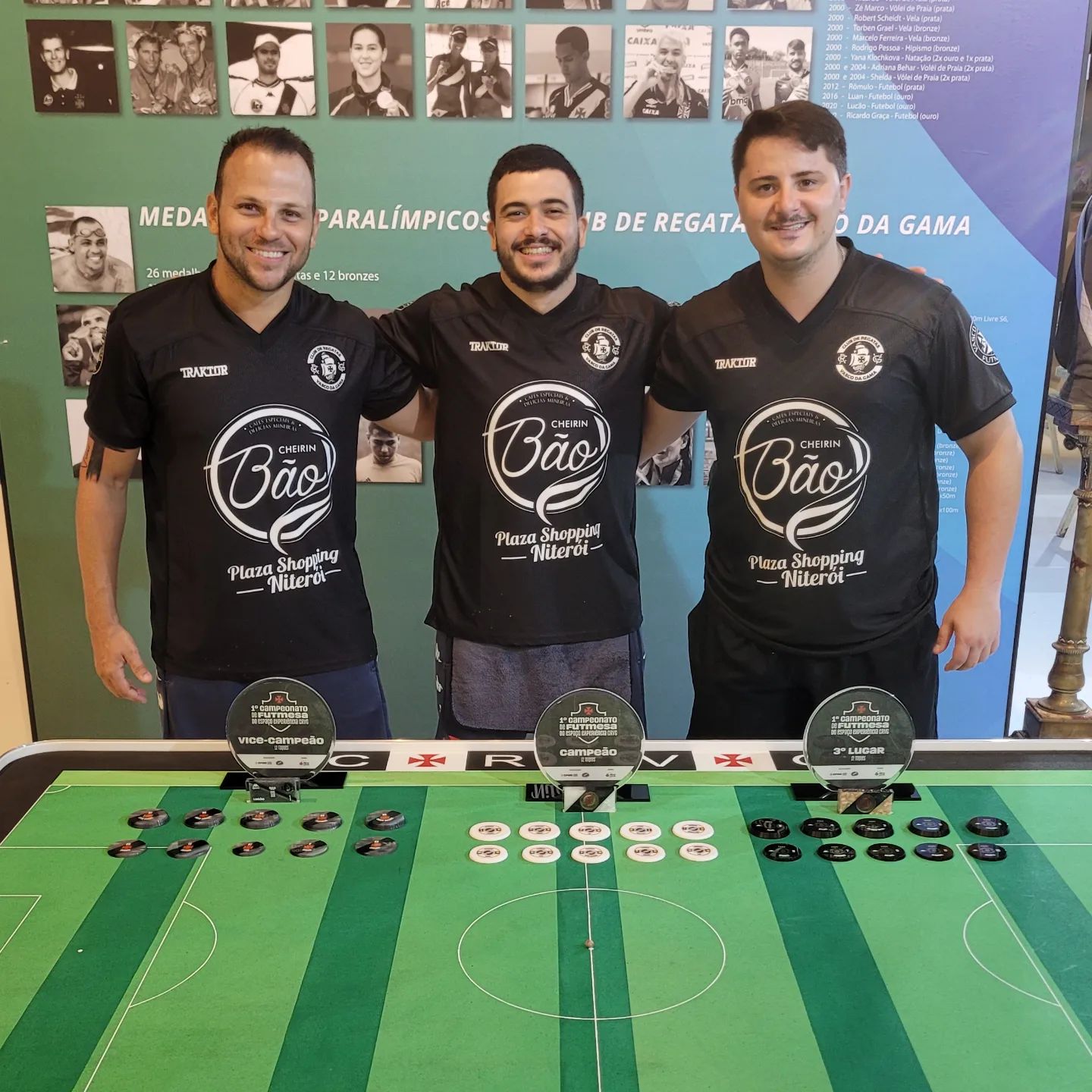 🏆Nando, ao centro, foi o grande campeão da I Copa Vasco Futmesa do Espaço Experiências, ao vencer 🥈Igor, na final, por 8 X 5.