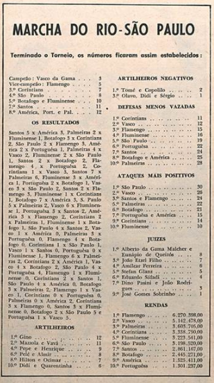 O 11 ideal do campeonato, pela Manchete, teve 10 dos 11 titulares da final da Copa do Mundo de 58, que aconteceria 3 meses depois, incluindo os 3 vascaínos Bellini, Orlando e Vavá - Almir e Paulinho também se destacaram muito.