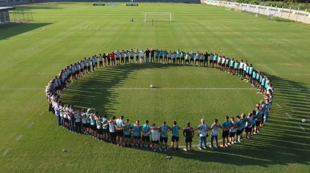 Carlos Brazil posta foto de jogadores, comissão técnica, diretores e torcedores orando no CT Moacyr Barbosa