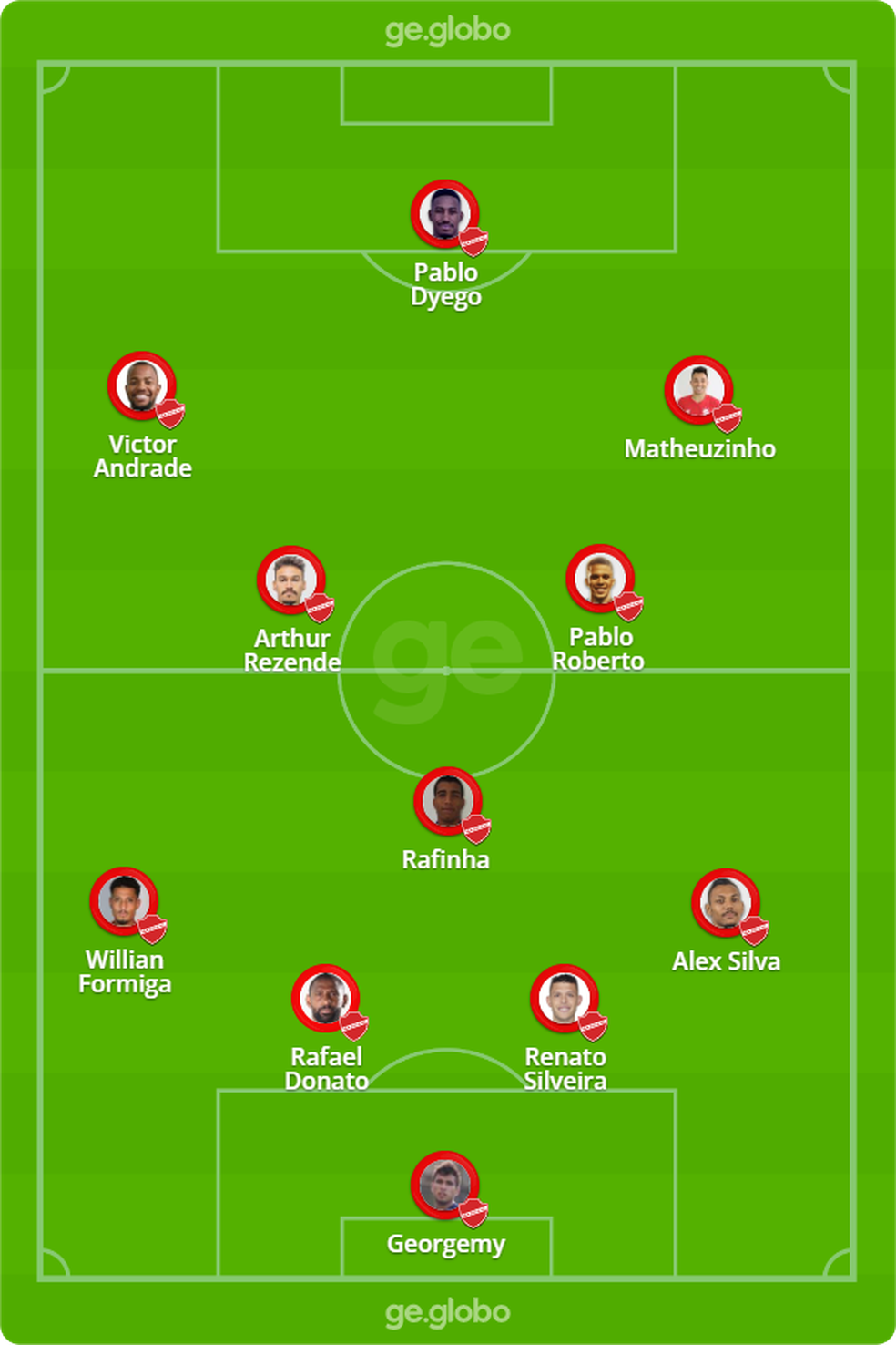 Provável escalação do Vila Nova: Georgemy; Alex Silva, Rafael Donato, Renato e Willian Formiga; Rafinha, Pablo Roberto e Arthur Rezende; Matheuzinho, Pablo Dyego e Victor Andrade.