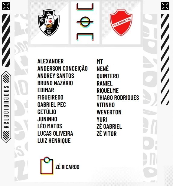 Os relacionados do Vasco para a estreia na Série B, hoje, às 19h, contra o Vila Nova, em São Januário. Como esperado, Lucas Oliveira é o único dos reforços à disposição. #VascoENM