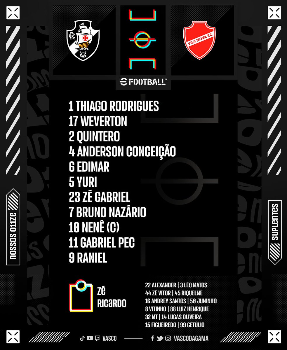 Confira a escalação do Vasco para o jogo contra o Vila Nova, pela estreia da Série B