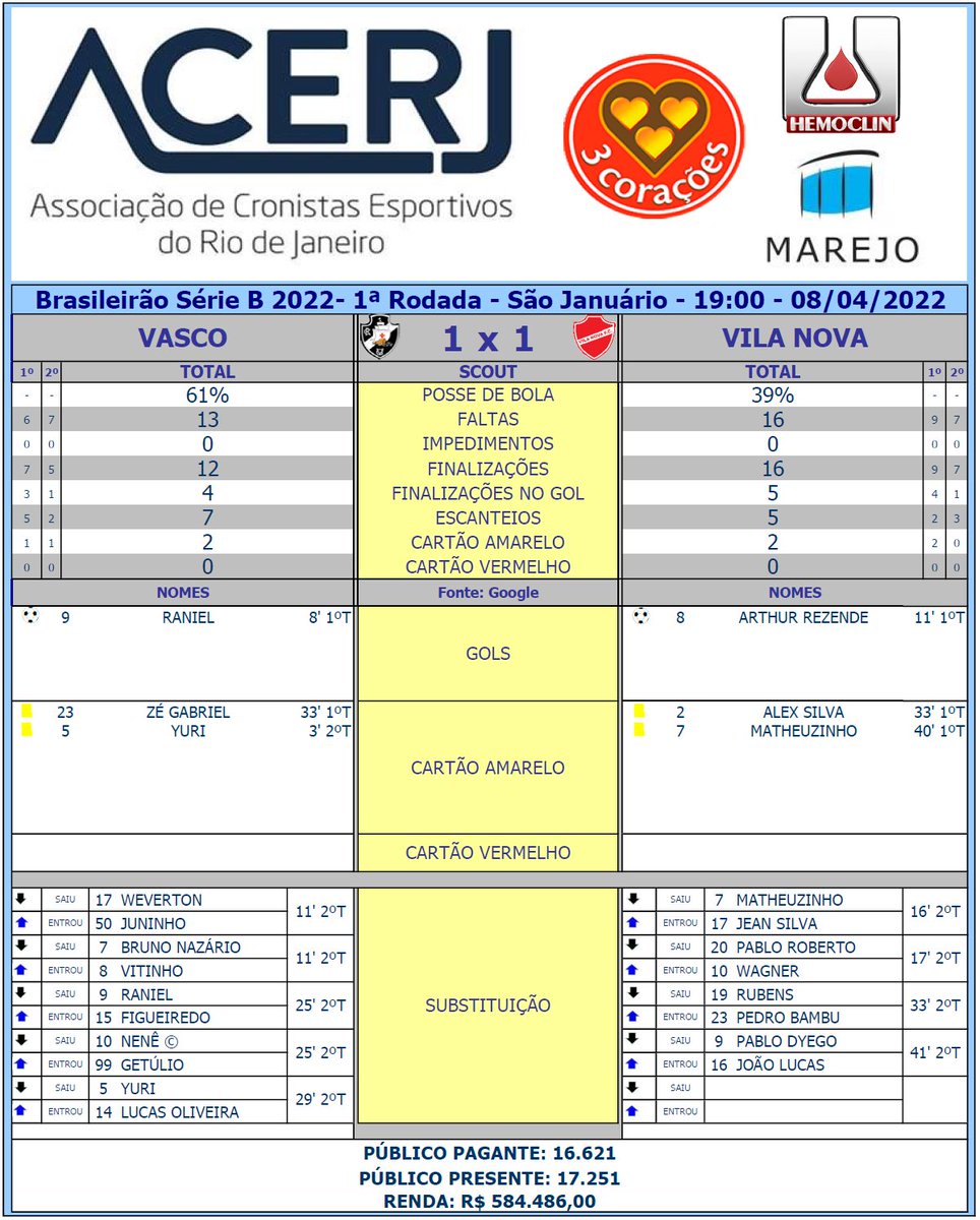 Cartões amarelos: Zé Gabriel e Yuri (Vasco); Alex Silva e Matheuzinho (Vila Nova)