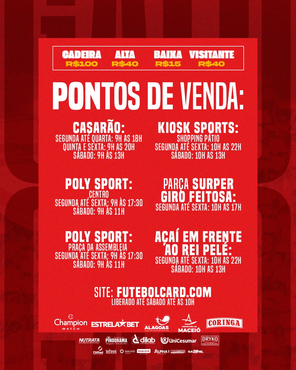 Os pontos de venda continuam os mesmos para nossa torcida. Já para os visitantes, apenas esses: