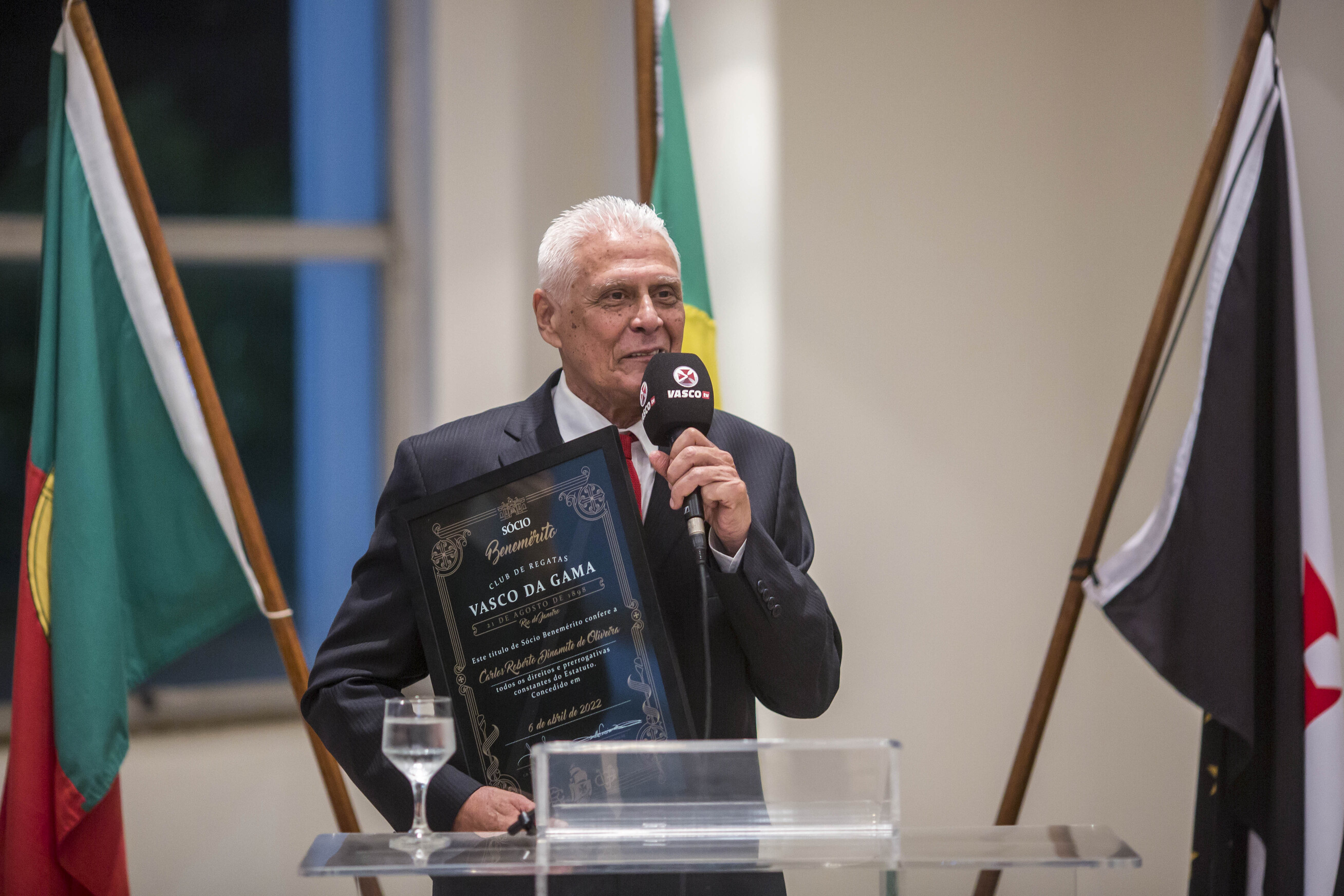 Roberto Dinamite recebe o titulo de grande benemerito do Club de Regatas Vasco da Gama no dia do seu aniversario de 68 anos na Sede Nautica da Lagoa em 13 de abril de 2022.
