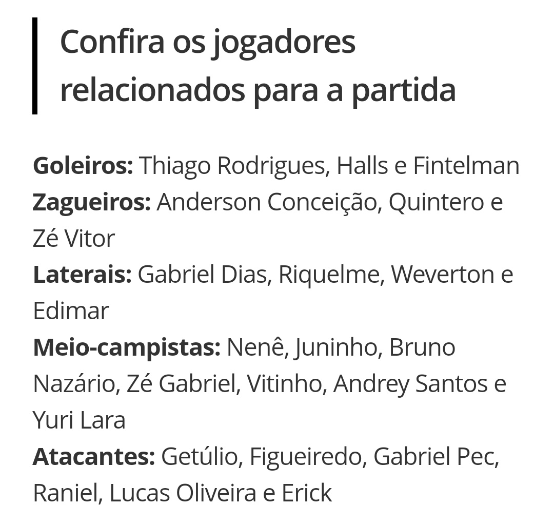 Léo Matos é ausência na lista.