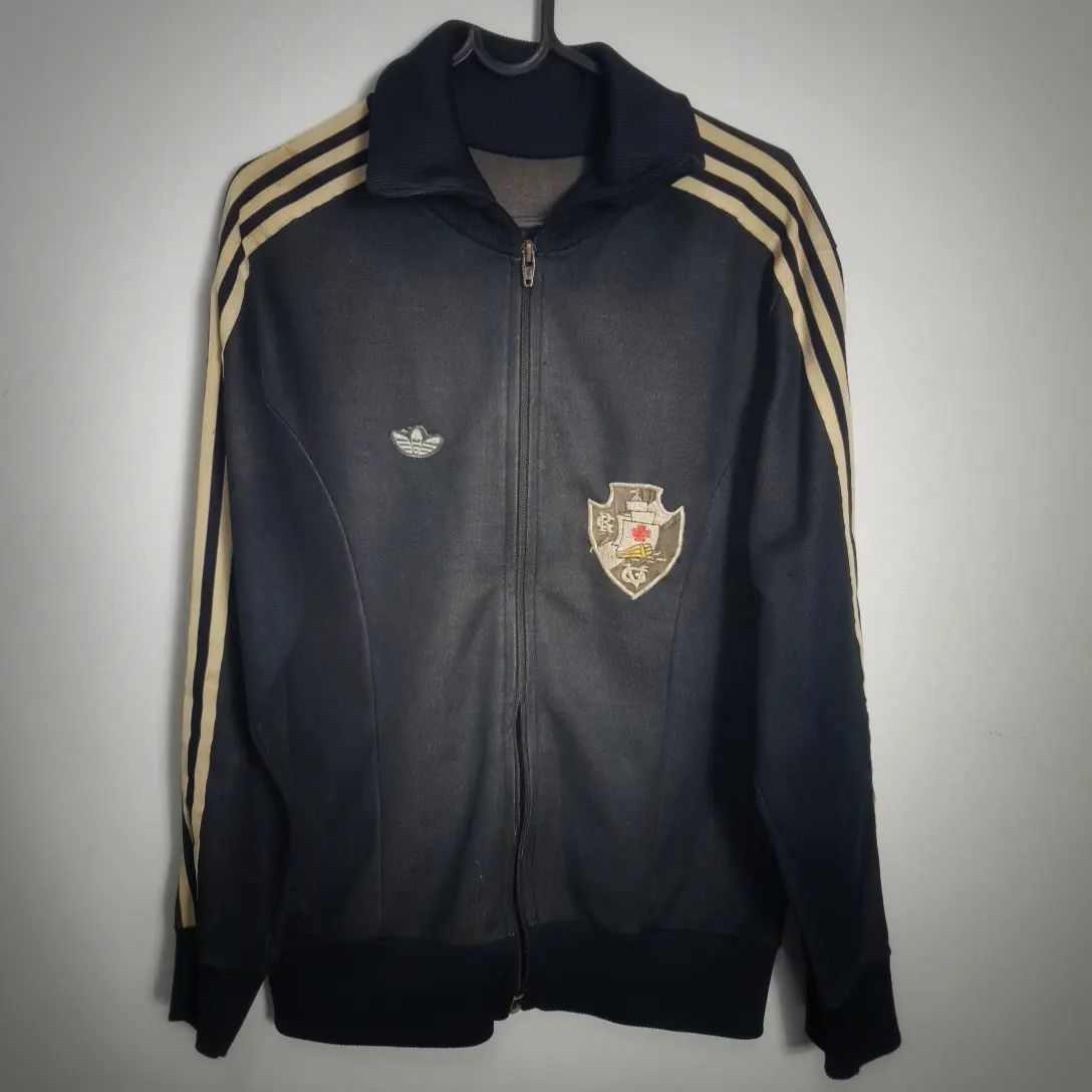 Casaco Adidas Anos 80 - Item pertencente ao acervo do @museuvascaino. Detalhe que este casaco, no lugar da tradicional Cruz de Malta, tem o escudo oficial do clube, algo muito pouco utilizado nos uniformes do Vasco da Gama. Não se tem registro deste modelo sendo usado pelo futebol profissional. Os únicos registros que encontrei até hoje são de categorias de base, principalmente da molecada. Na foto 3 vemos Felipe e Pedrinho em destaque, e Pedrinho usando este mesmo modelo de casaco.