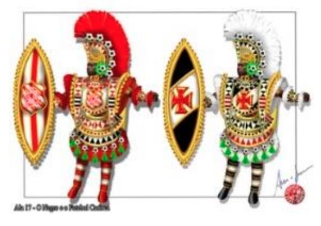 Diante da imposição, o presidente vascaíno, José Augusto Prestes, enviou à AMEA uma carta– conhecida como A Reposta Histórica – recusando-se à submissão e não se filiou à associação, episódio emblemático da luta contra o racismo no futebol e na sociedade. Os símbolos dos dois clubes estão presentes nas fantasias da ala, estilizadas como guerreiros que resistiram e lutaram pela presença do negro no futebol carioca. A fantasia, de estética africana, é complementada pelas bolas de futebol e pelas cores dos dois clubes: o vermelho e branco do Bangu, e o preto e branco vascaíno. Apesar de vários atletas negros terem contribuído para a conquista de muitos campeonatos e copas e para o reconhecimento do Brasil como o país do futebol, ainda hoje o racismo insiste em assombrar o esporte, um dos poucos caminhos encontrados pelos negros para sua ascensão social.
