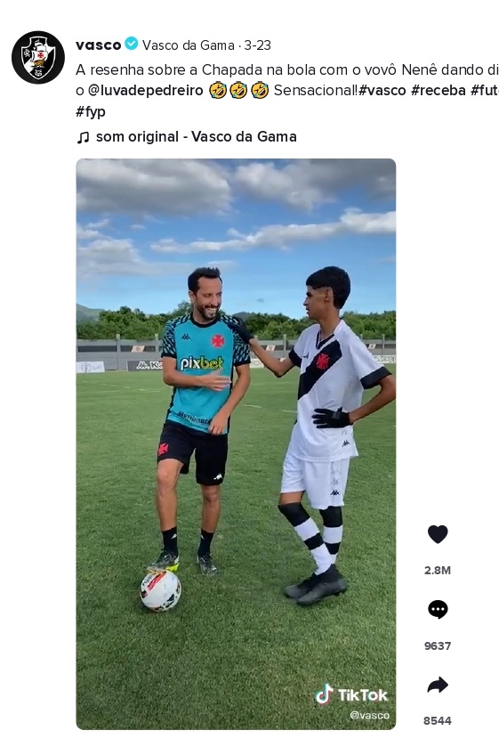 25/04/22 - Vasco foi o clube esportivo das Américas com mais visualizações no TikTok em março