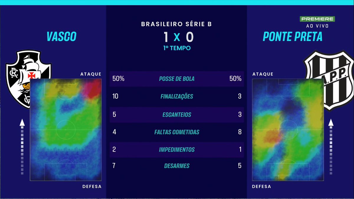 Veja os mapas de calor de Vasco e Ponte Preta no 1º tempo