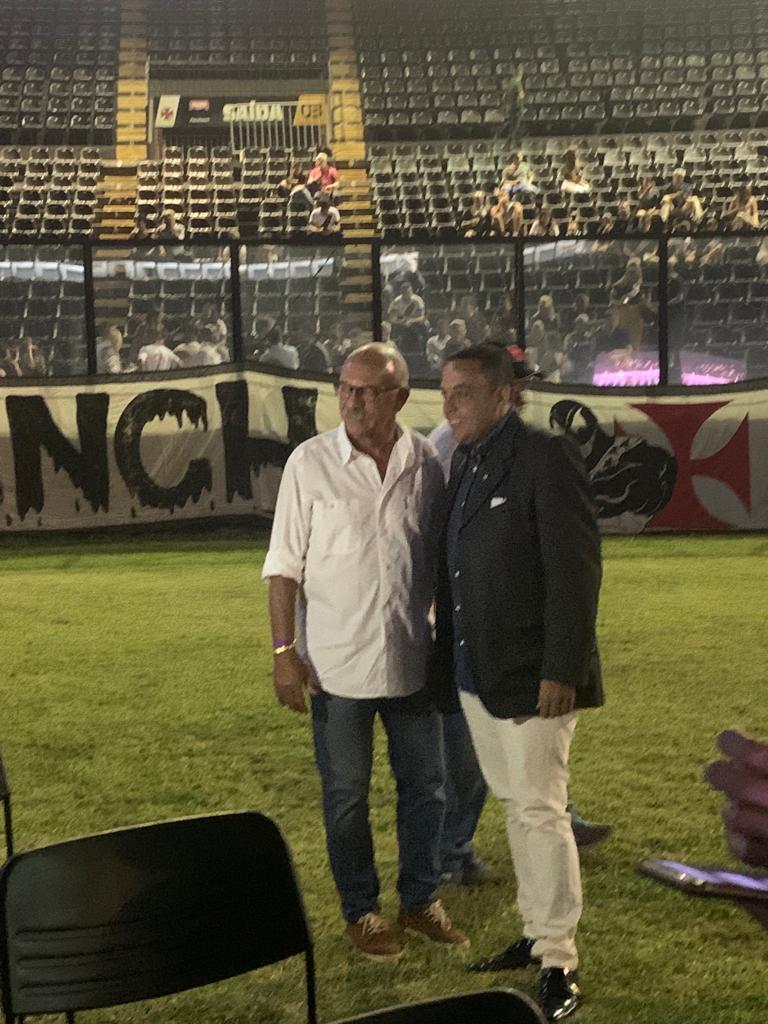 Ídolo do Flamengo, Junior está presente para a cerimônia de daqui a pouco da inauguração da estátua de Roberto Dinamite em São Januário