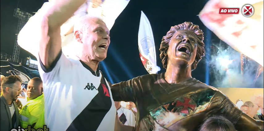 Estátua de Roberto Dinamite é inaugurada em São Januário em festa com shows, convidados ilustres e queima de fogos