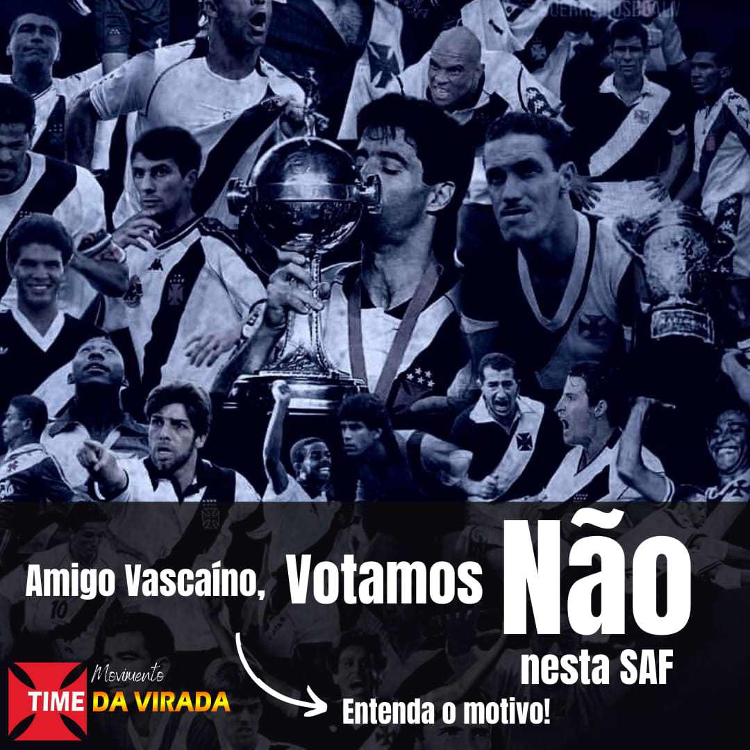O Movimento Time da Virada, diante do compromisso de defesa do Club de Regatas Vasco da Gama, sua institucionalidade e autonomia, vem manifestar seu posicionamento a respeito da AGE que propõe a alteração do Estauto do Club, visando a permissão para a criação da SAF. Entendemos que tal processo é de vital importância, pois direciona os rumos do Club para as próximas décadas. Assim sendo, não deve ser conduzido de maneira atabalhoada, sem ampla discussão, sem que o vascaíno opine sobre o modelo mais adequado. Entendemos que o nosso estatuto não deve se adequar às necessidades de um eventual comprador. Mas que caso o sócio decida pela SAF, que o comprador se adéqüe às condições do Vasco da Gama.