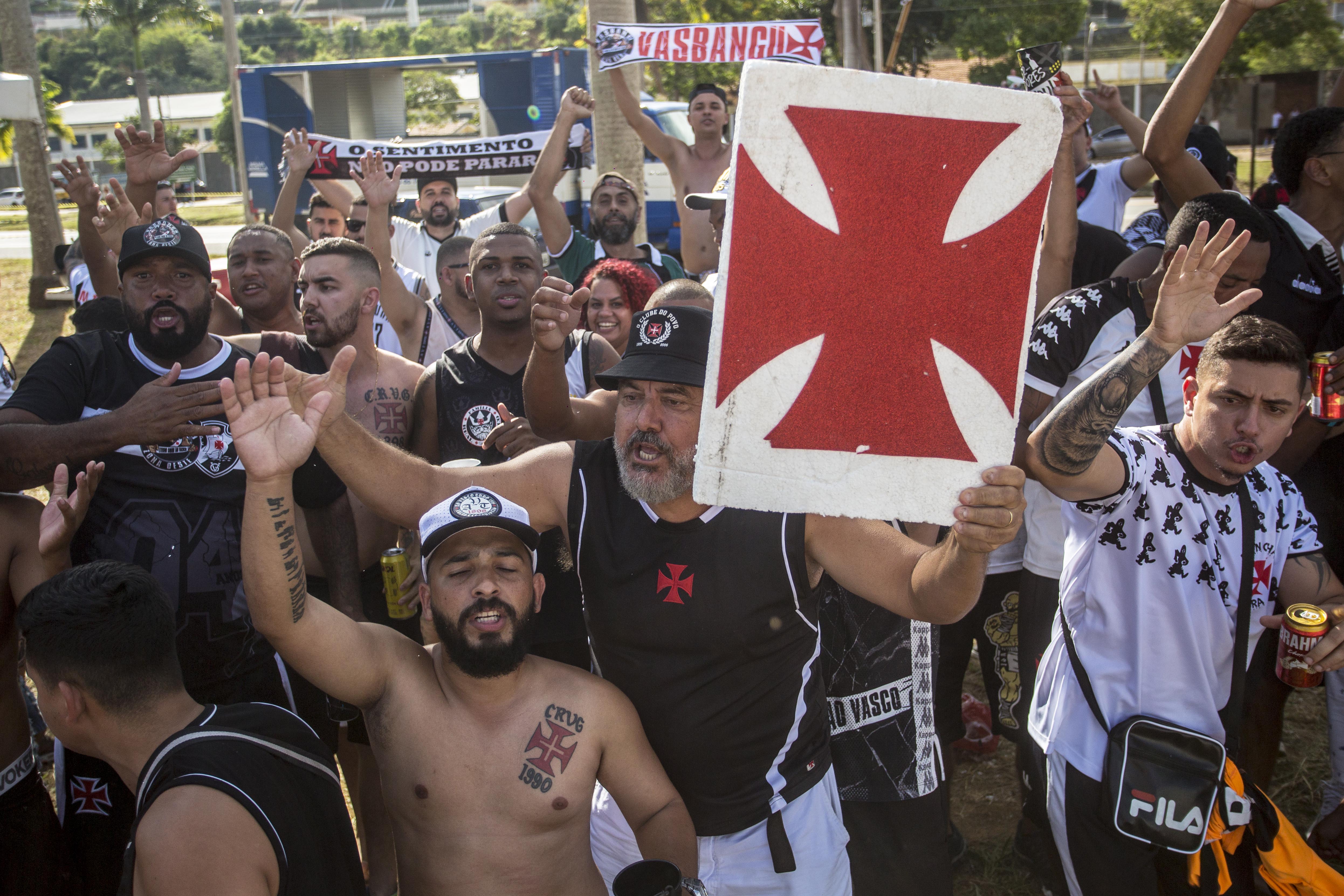 Torcedores do Vasco antes da partida entre Tombense x Vasco pelo Campeonato Brasileiro B na Cidade de Muriaé, Minas Gerias, em 1o de maio de 2022. Foto: Daniel RAMALHO/CRVG