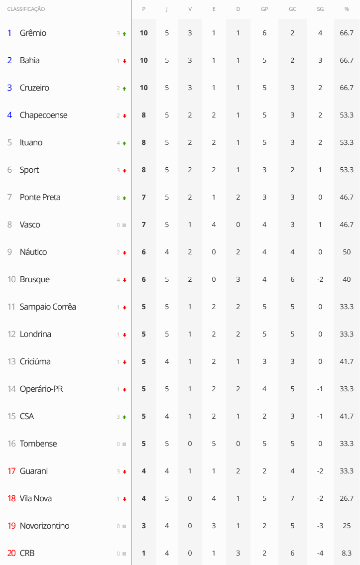 - Vitória do Guarani - Guarani empata com o Vasco em pontos (7 a 7) e o ultrapassa no número de vitórias (2 a 1).