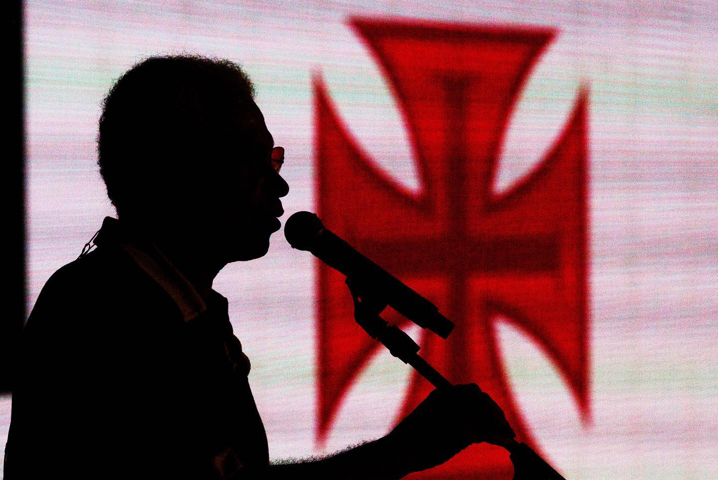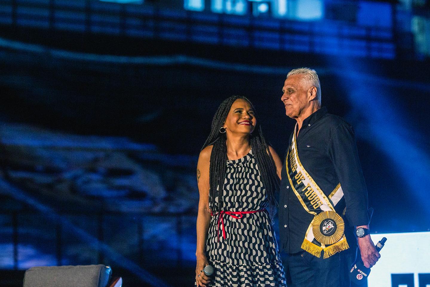 Roberto Dinamite agradece aos vascaínos ilustres que compareceram à inauguração de sua estátua