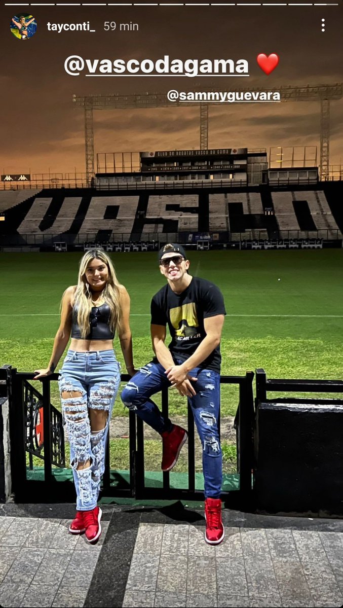 Taynara Conti e Sammy Guevara, seu namorado, em São Januário. Os dois são lutadores da @AEW, empresa americana de Pro-Wrestling.