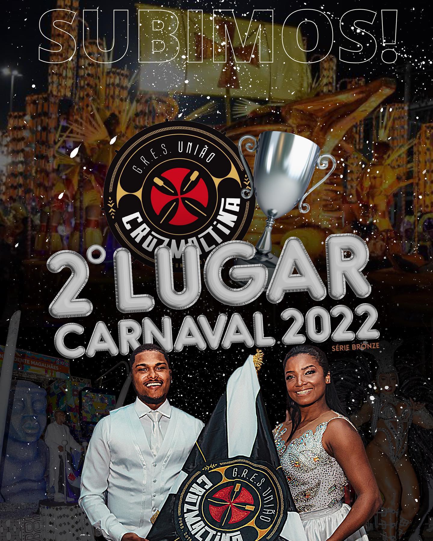 Com 269,6 pontos a União Cruzmaltina arrematou o segundo lugar no carnaval 2022 na série Bronze e desta forma sobe mais um degrau para realizar o tão sonhado desfile na Sapucaí!
