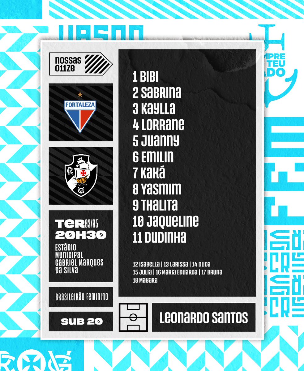 Feminino Base: Veja a escalação do Vasco para o jogo contra o Fortaleza