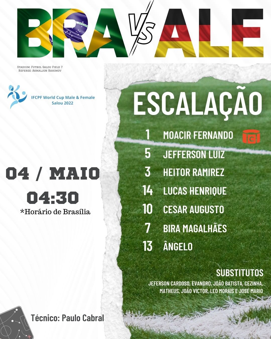 Futebol Paralímpico: Com Bira e Lucas titulares, Brasil enfrenta a Alemanha pela Copa do Mundo às 4h30 com transmissão