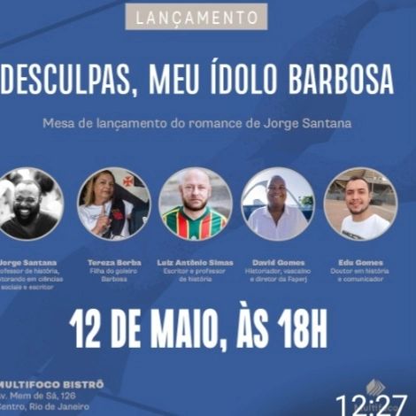 Livro 'Desculpas, meu ídolo Barbosa', de Jorge Santana, será lançado na próxima 5ª-feira no Centro do Rio
