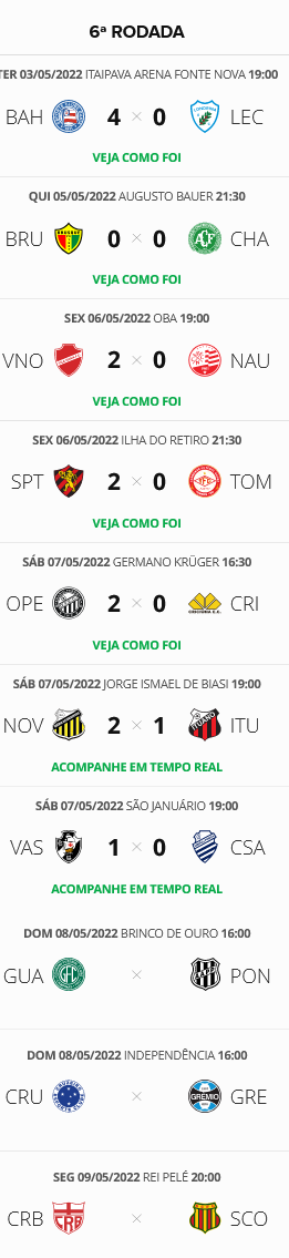 Fonte: NETVASCO (texto), ge (classificação, resultados)