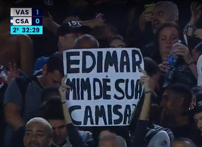 Torcedor leva cartaz para São Januário e pede camisa de Edimar; veja foto