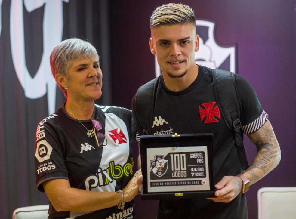 Gabriel Pec definitivamente viveu uma noite especial no último sábado, em São Januário. Autor do gol da vitória por 1 a 0 sobre o CSA, em jogo válido pela sexta rodada da Série B do Brasileirão, o atacante ainda recebeu uma placa em homenagem aos 100 jogos com a camisa do clube. E das mãos da própria mãe.