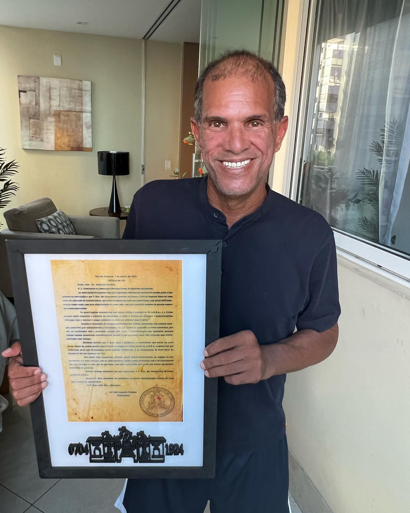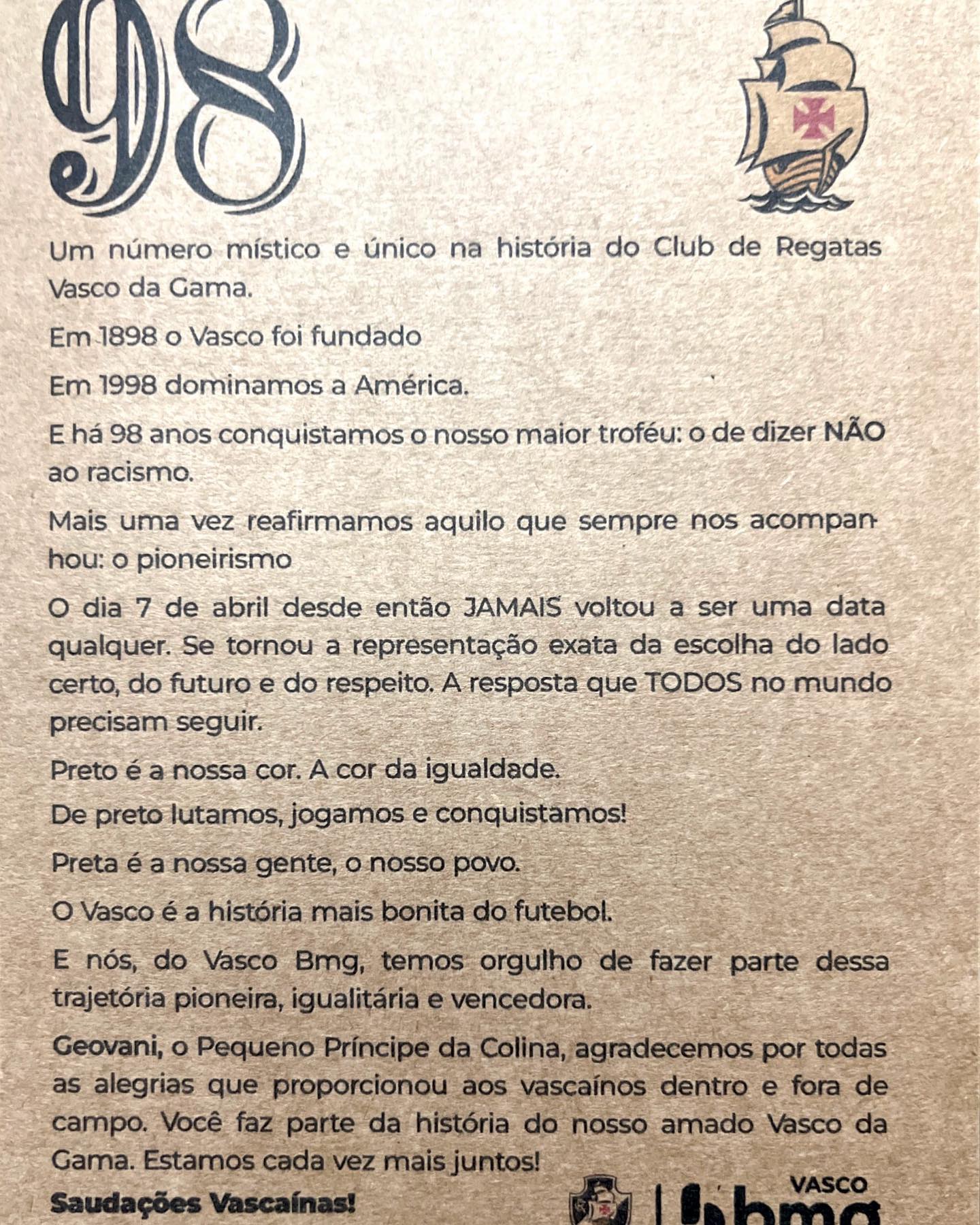 Geovani recebe réplica da Resposta Histórica do Vasco Bmg e agradece