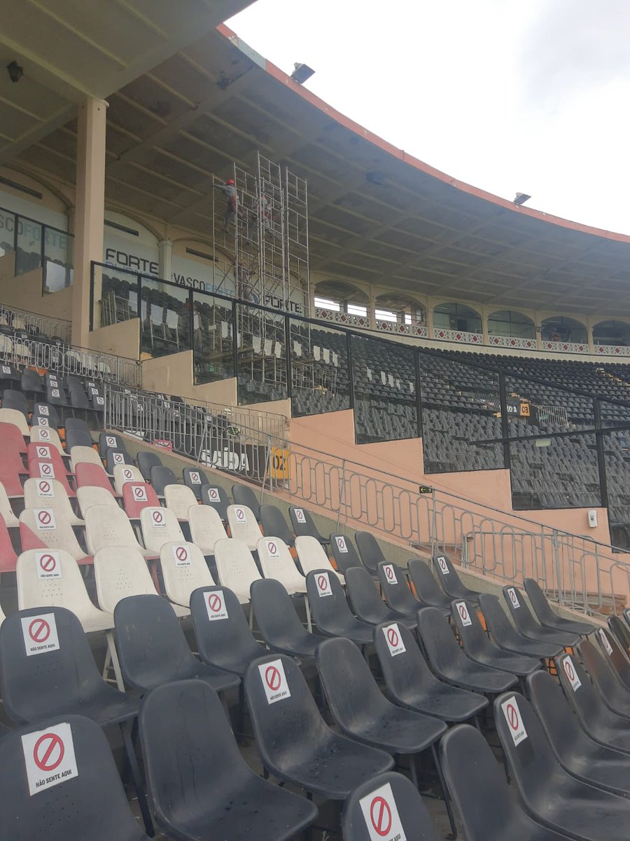 Andaimes sendo desmontados no Setor VIP, que está esgotado. A arquibancada também esgotou. Restam apenas poucos bilhetes para a social. Mais de 19 mil ingressos foram emitidos. #Jogada10