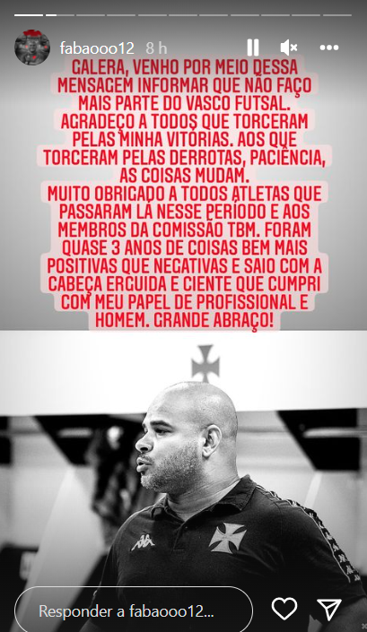 Futsal Base: Técnico do Sub-20, Fabio Cirazo anuncia saída do Vasco