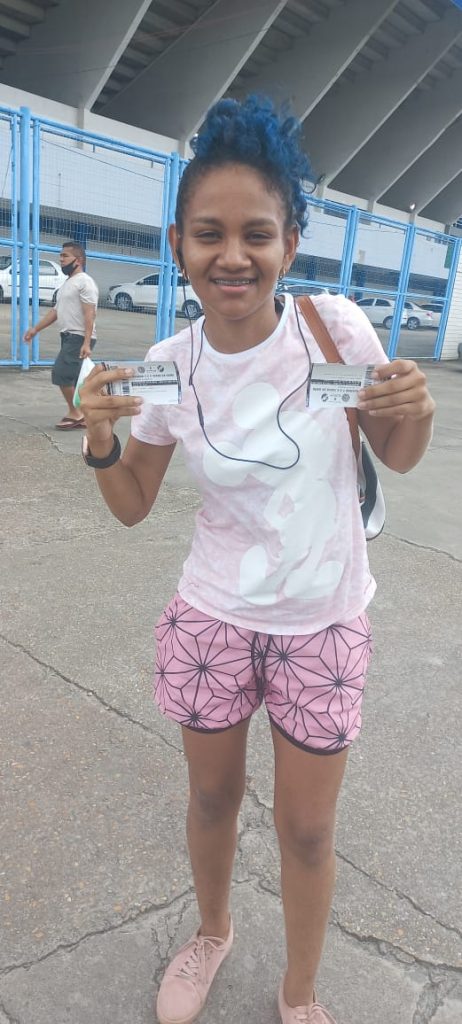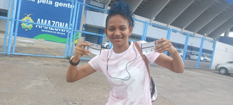 A estudante Anny Silva, de 24 anos de idade, mora no bairro Jorge Teixeira, Zona Leste de Manaus, e compareceu, nesta sexta-feira (13), na bilheteria da Arena Amadeu Teixeira para garantir não somente a própria entrada, mas a da filha e do marido.