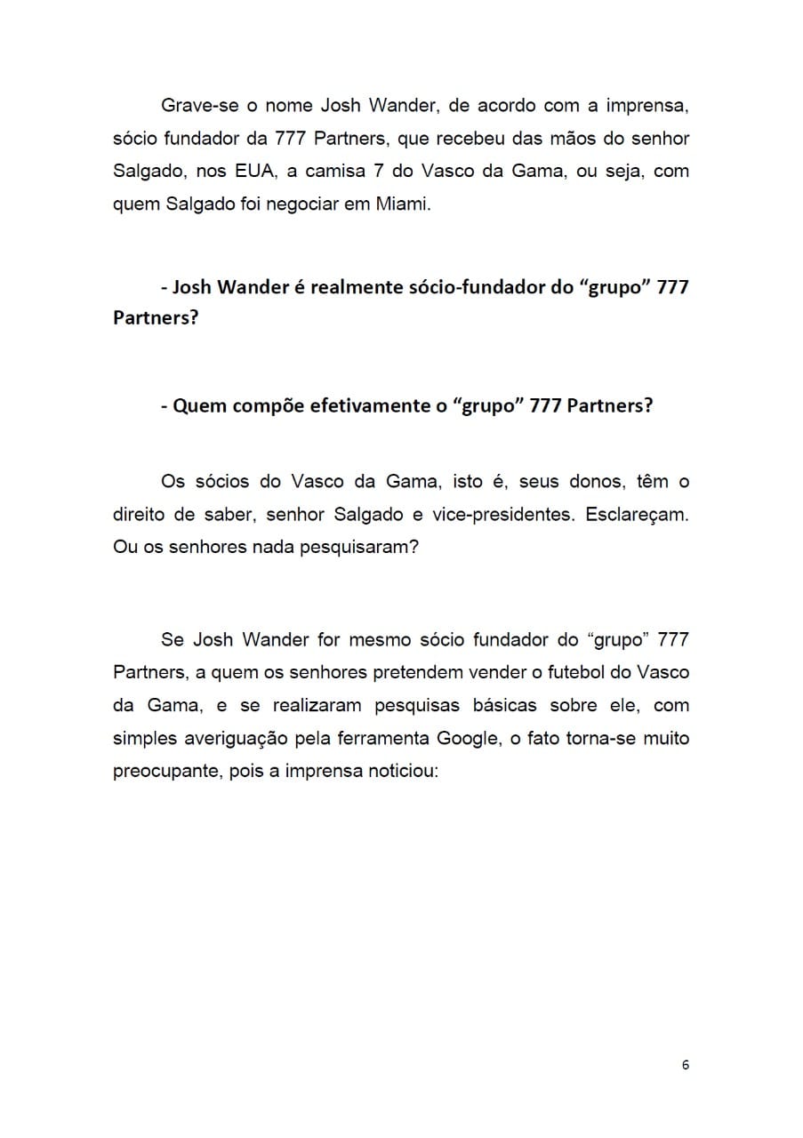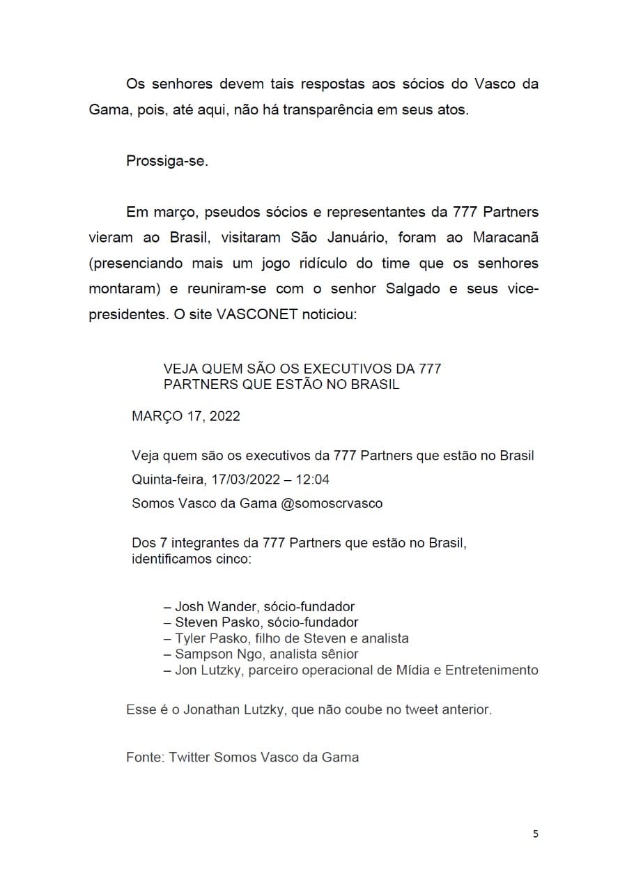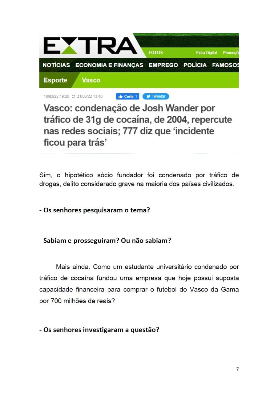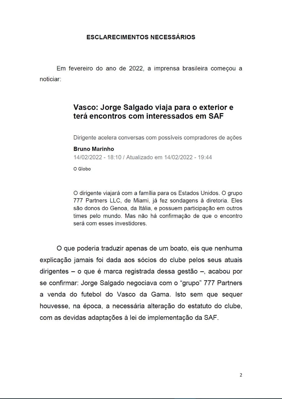 GB Itamar de Carvalho notifica o Vasco pedindo esclarecimentos sobre o Grupo 777 Partners .