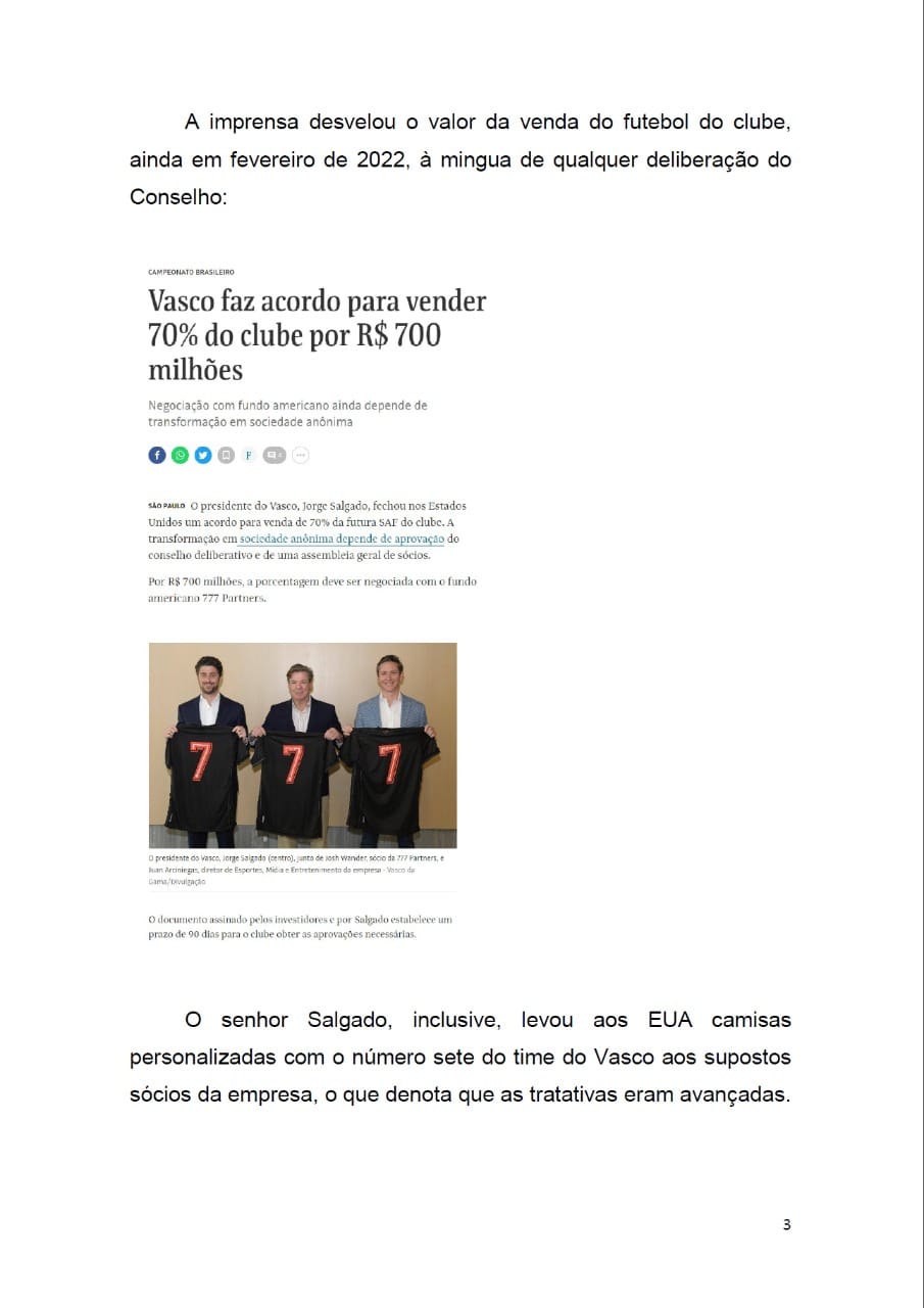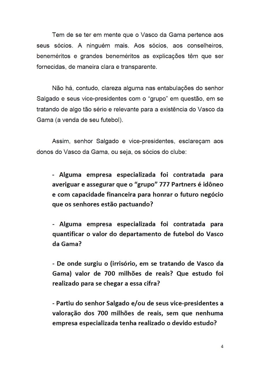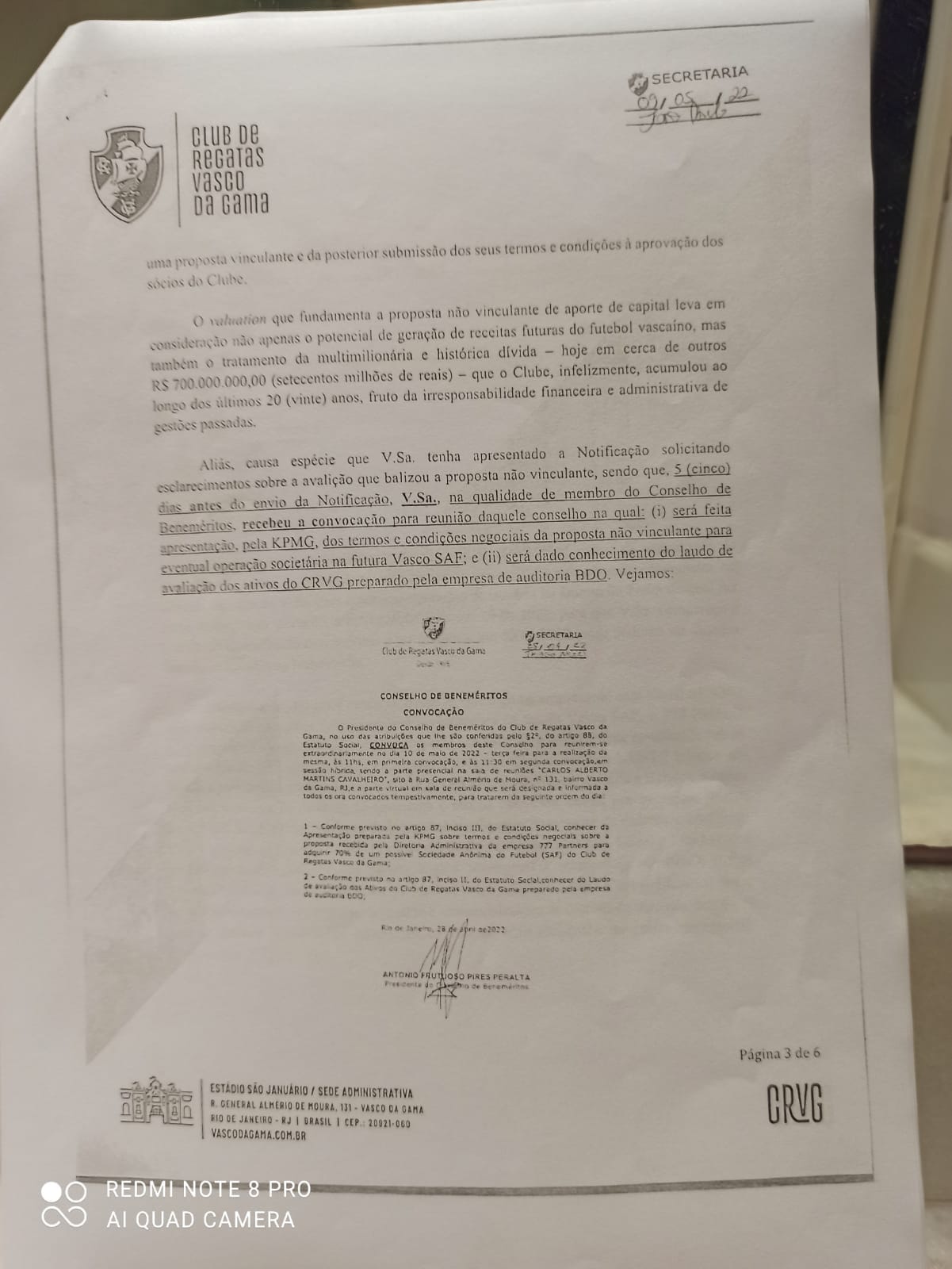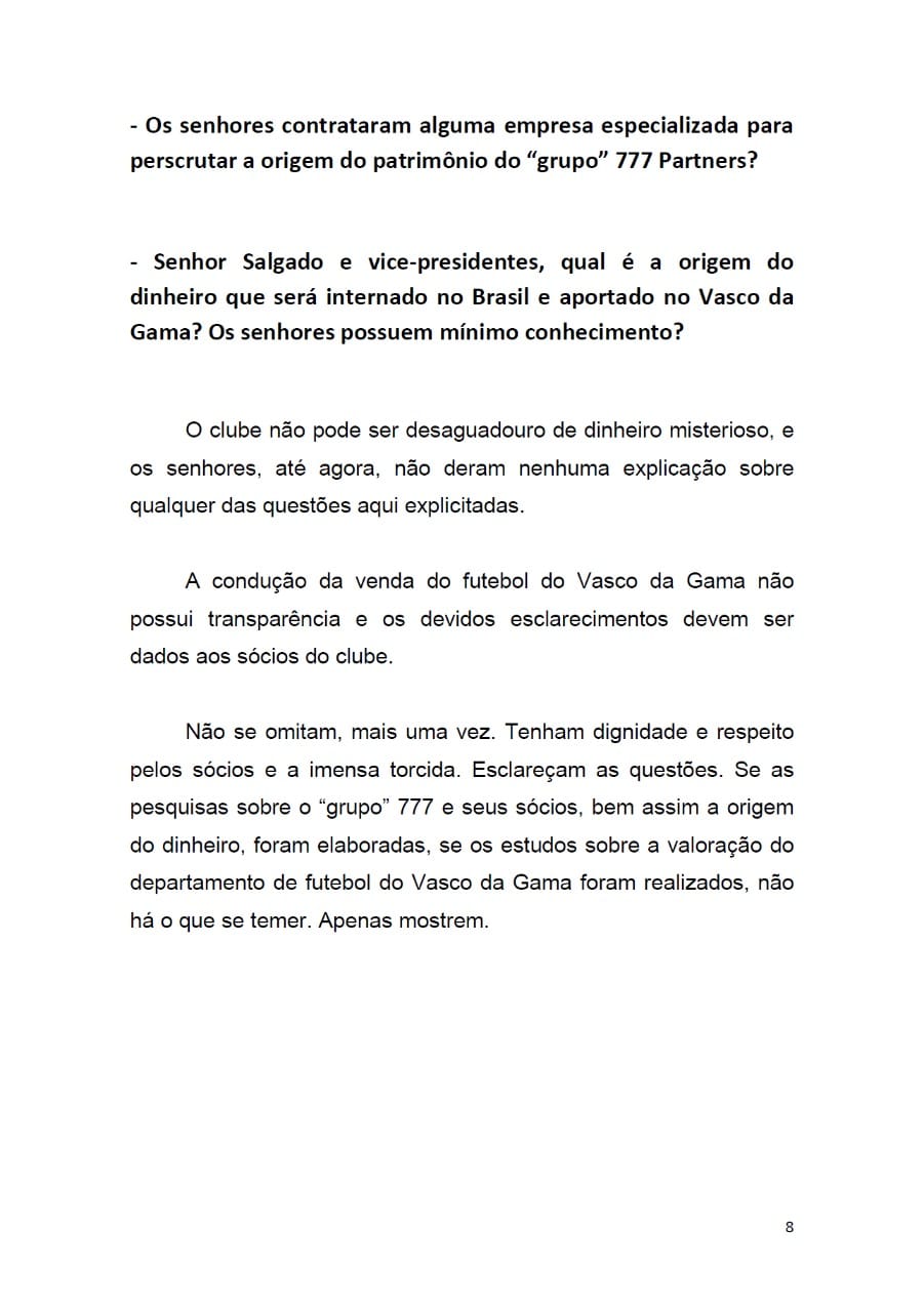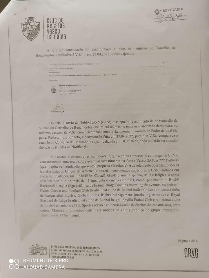 GB Itamar de Carvalho notifica o Vasco pedindo esclarecimentos sobre o Grupo 777 Partners .