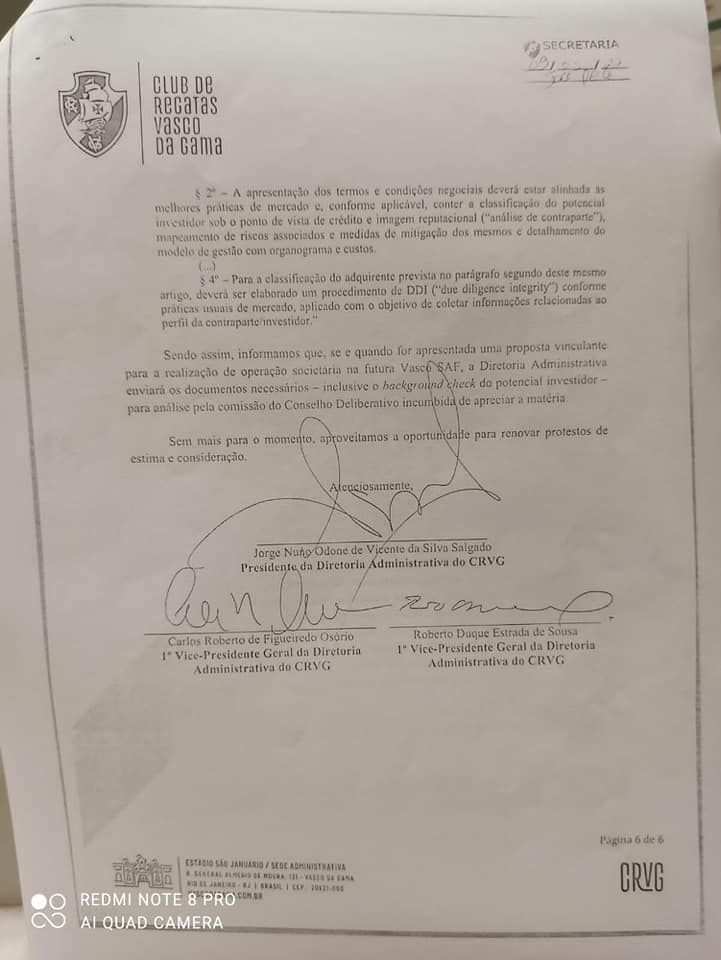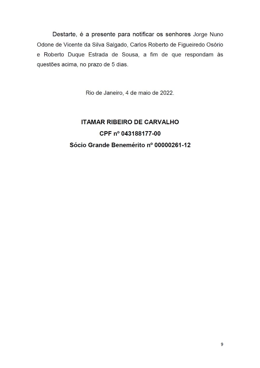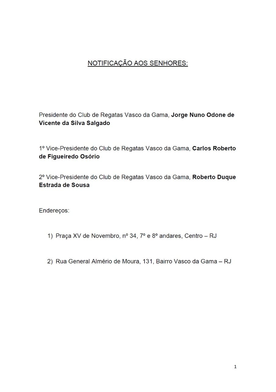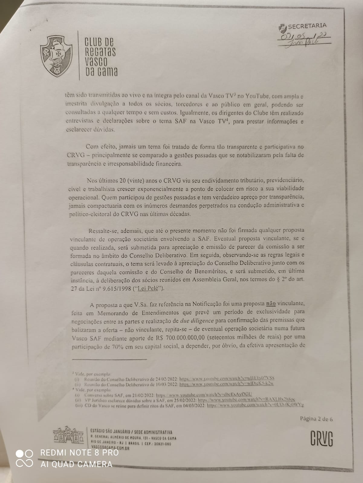 GB Itamar de Carvalho notifica o Vasco pedindo esclarecimentos sobre o Grupo 777 Partners .