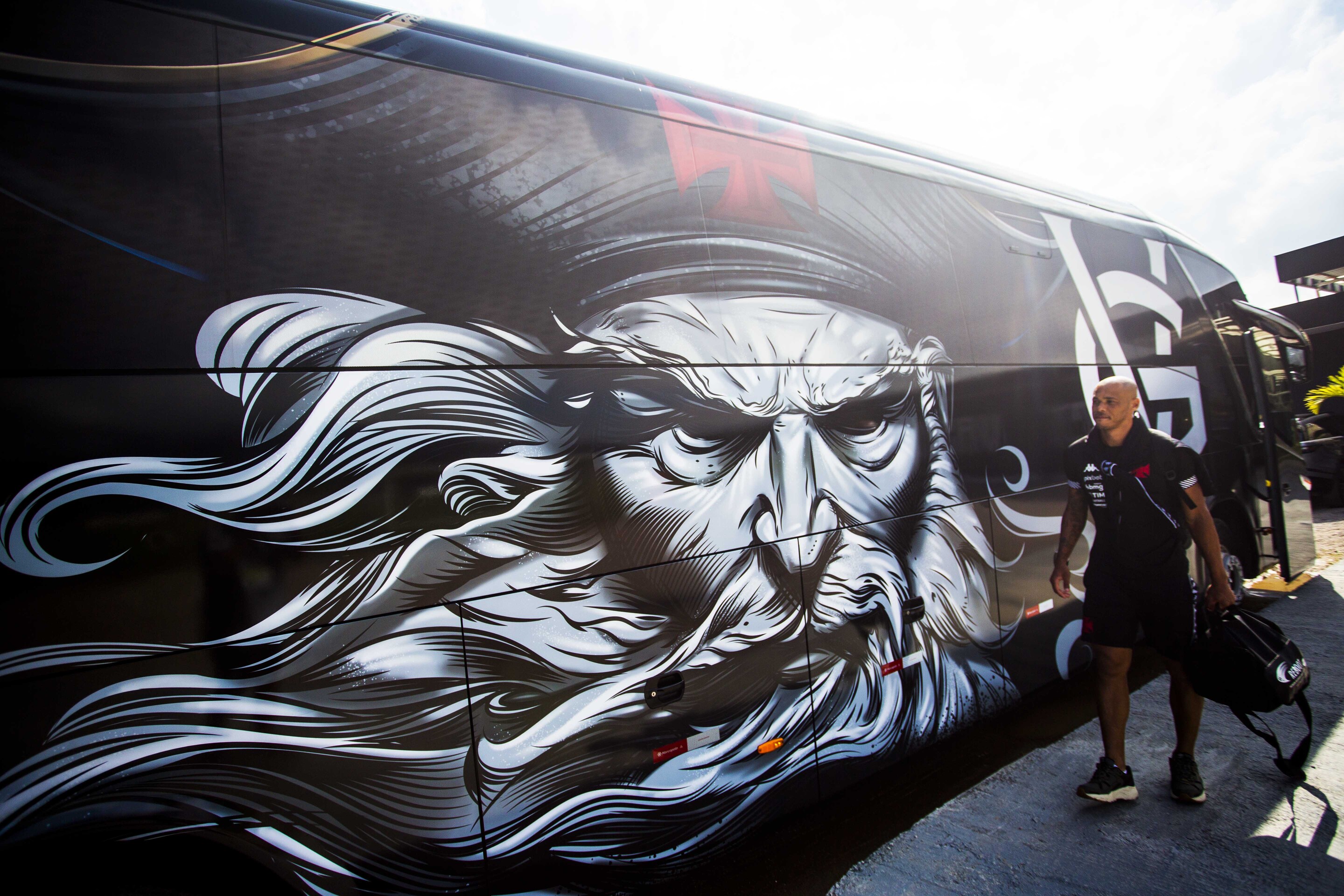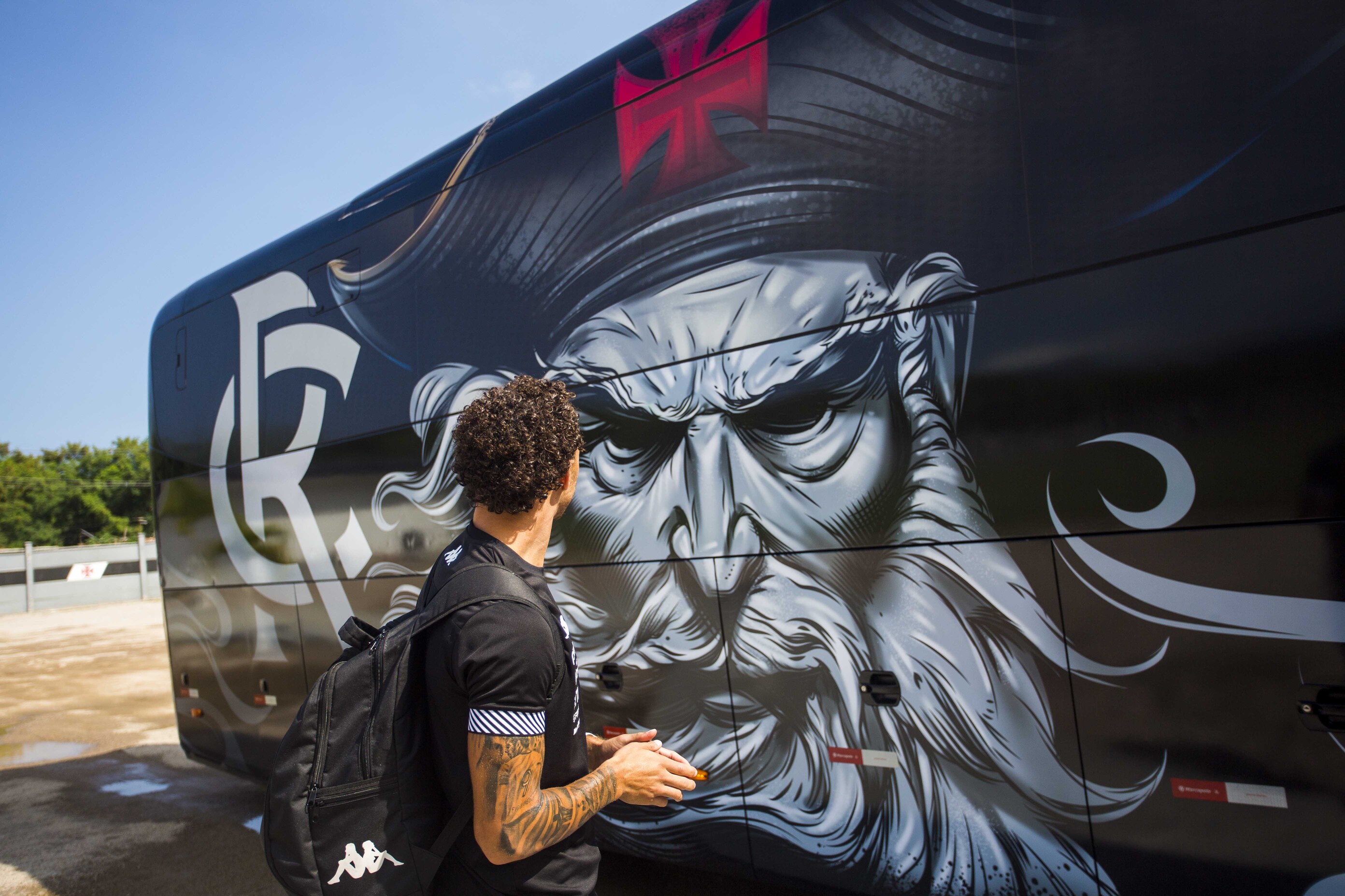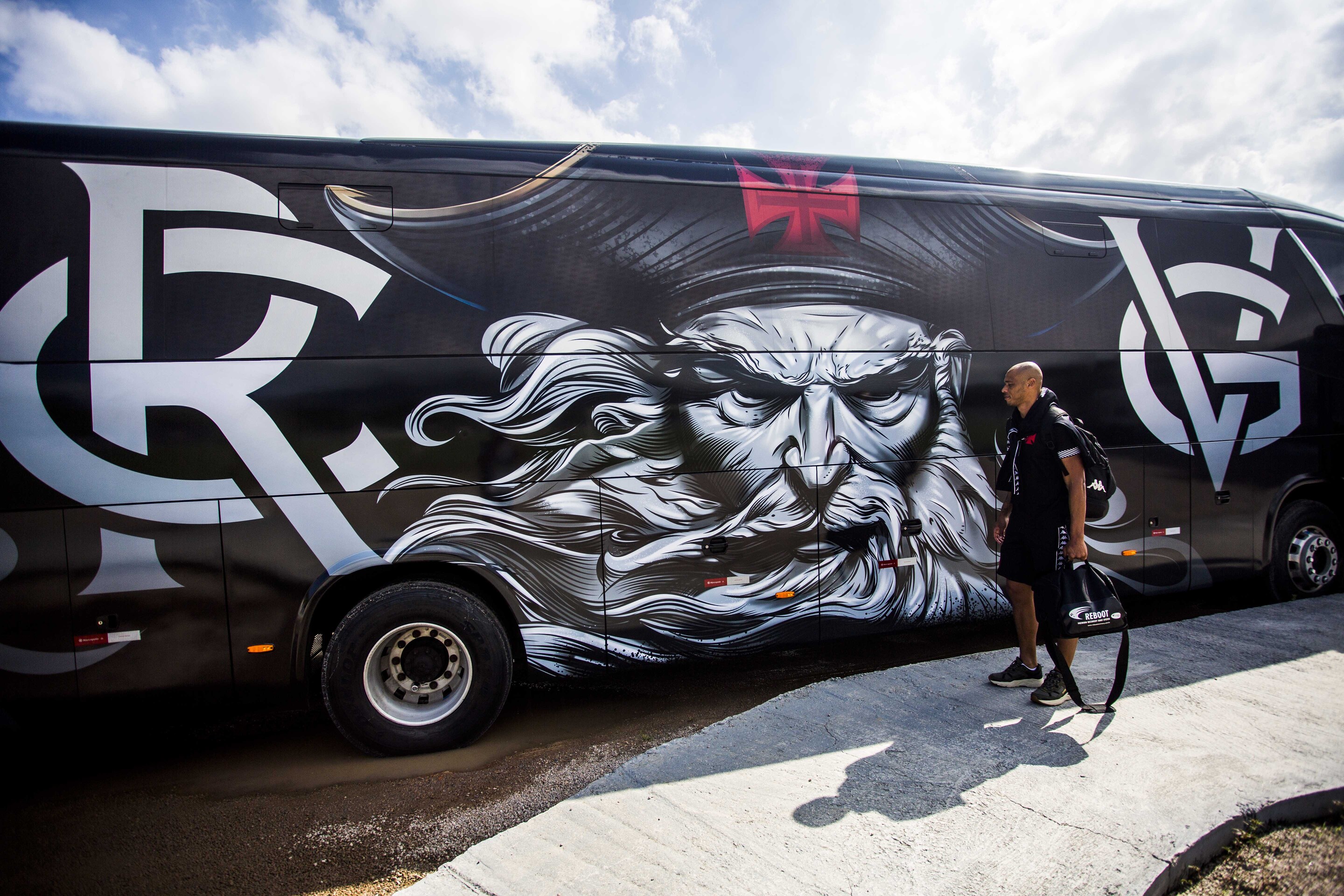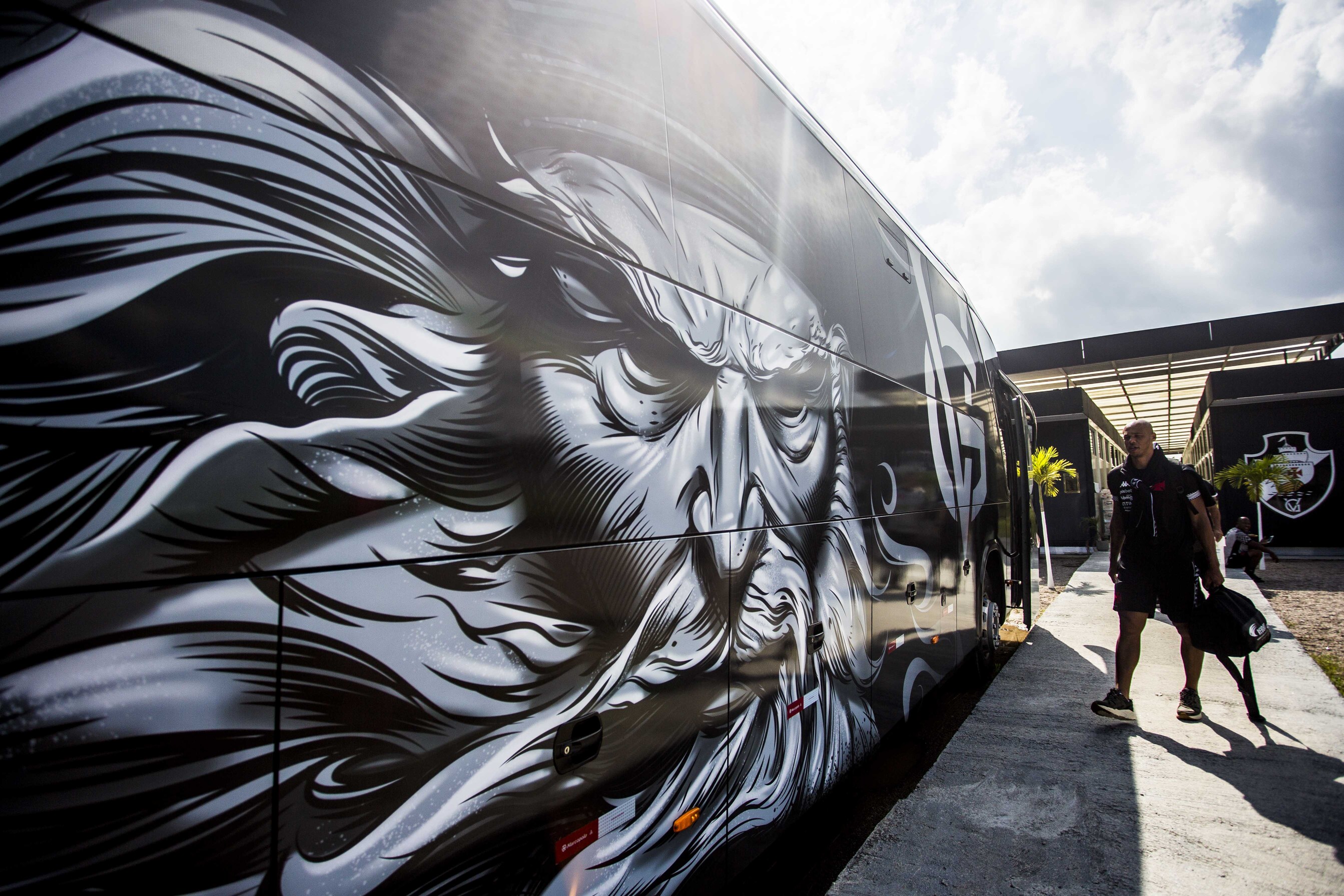 Onibus novo do Vasco é visto no CT Moacyr Barbosa. A equipe enfrenta o Bahia amanha pelo Campeonato Brasileiro B. Foto: Daniel RAMALHO/CRVG