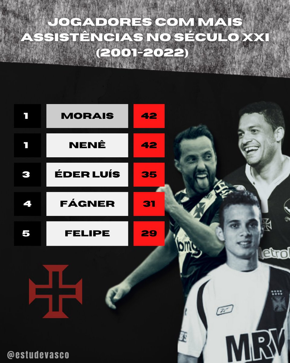 Pelas nossas contas, Nenê está a uma assistência de ultrapassar Morais e se tornar, de forma isolada, o jogador do Vasco com mais passes pra gols neste século.