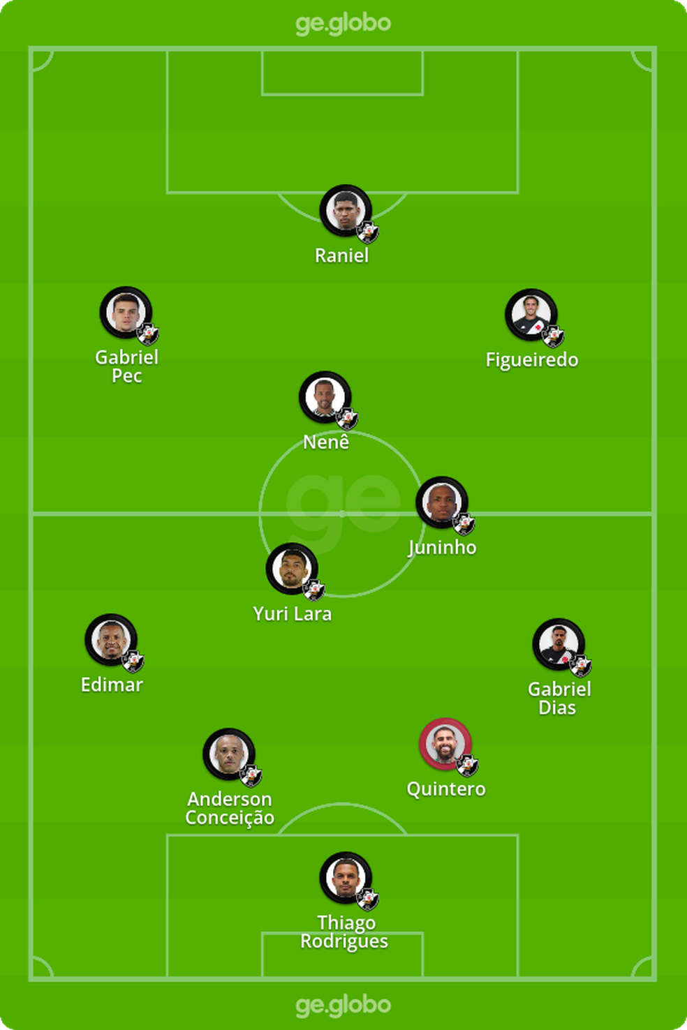 Provável escalação: Thiago Rodrigues, Gabriel Dias, Quintero, Anderson Conceição, Yuri Lara, Juninho, Nenê, Figueiredo, Gabriel Pec e Raniel.